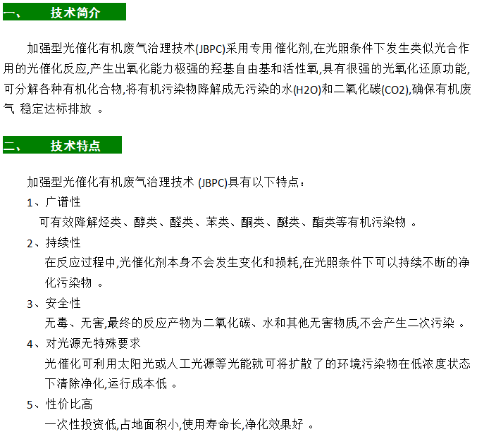 加強(qiáng)型光催化有機(jī)廢氣治理技術(shù)(JBPC)
